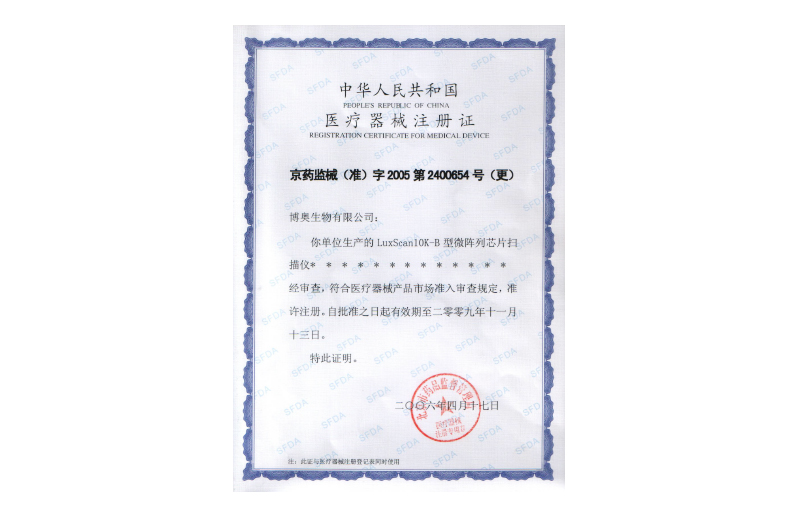自主研發(fā)的專用于微陣列芯片的激光共焦掃描儀LuxScan™ 10K-B 獲國(guó)家醫(yī)療器械注冊(cè)證