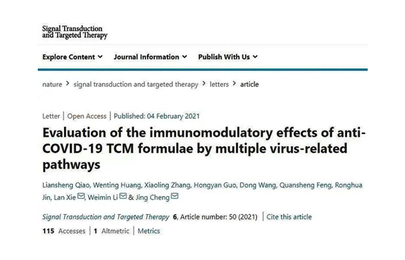 基于高通量分子本草篩選平臺(tái)開展的對(duì)抗新冠肺炎中藥方劑評(píng)價(jià)研究成果在Signal Transduction and Targeted Therapy(IF=38.104)雜志以封面文章 接收,推動(dòng)了中醫(yī)藥的國(guó)際化進(jìn)程