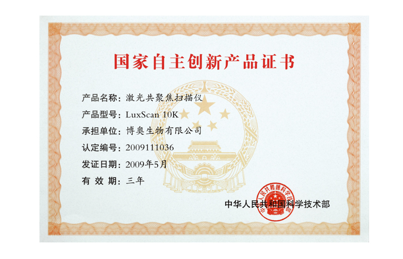 晶芯® LuxScan™ 10K掃描儀獲“國(guó)家自主創(chuàng)新產(chǎn)品”稱號(hào)