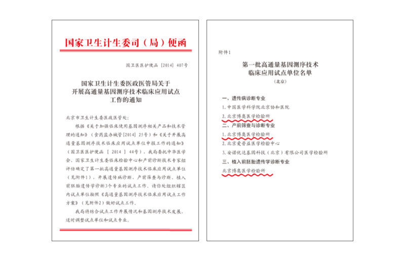 博奧檢驗(yàn)成為國(guó)家衛(wèi)生計(jì)生委第一批批準(zhǔn)的在遺傳病診斷、產(chǎn)前篩查與診斷、植入前胚胎遺傳學(xué)診斷三方面開展高通量基因測(cè)序臨床應(yīng)用的試點(diǎn)單位