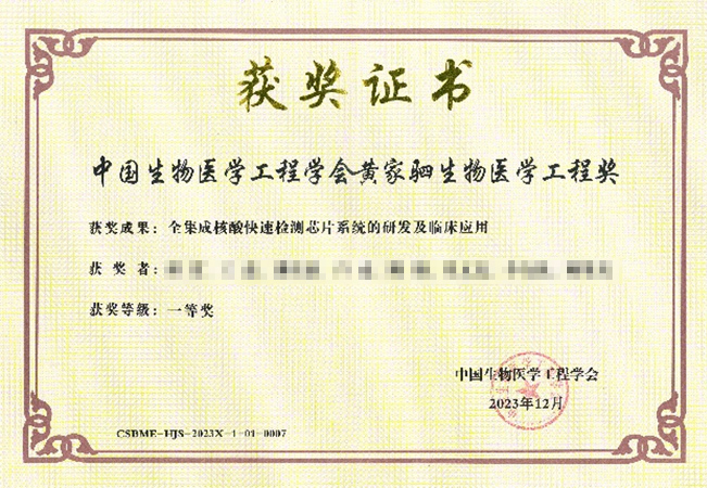 博奧晶典 “全集成核酸快速檢測(cè)芯片系統(tǒng)的研發(fā)及臨床應(yīng)用”榮獲中國(guó)生物醫(yī)學(xué)工程領(lǐng)域的最高科學(xué)技術(shù)獎(jiǎng)-黃家駟生物醫(yī)學(xué)工程獎(jiǎng)科學(xué)技術(shù)獎(jiǎng)一等獎(jiǎng)