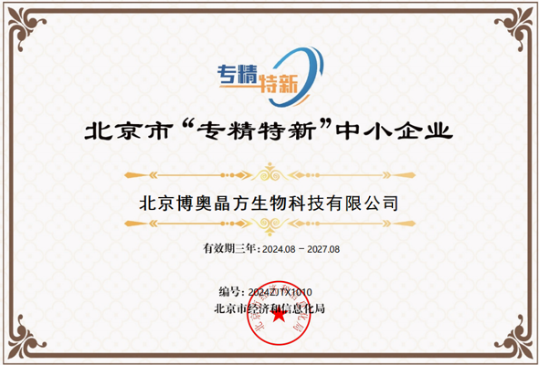 博奧晶方獲評(píng)北京市“專精特新”企業(yè)稱號(hào)