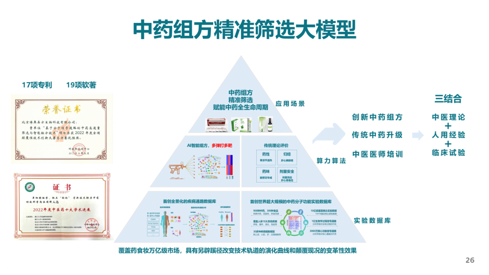 值得注意的是,博奧晶方憑借其世界首創(chuàng)基于生物芯片技術(shù)的中藥組方篩選大模型,不僅榮獲了2022年科技部全國(guó)顛覆性技術(shù)創(chuàng)新大賽最高獎(jiǎng)及獲評(píng)2022年度中醫(yī)藥十大學(xué)術(shù)進(jìn)展,更是在公司成立僅一年半時(shí)間就獲批國(guó)家級(jí)高新技術(shù)企業(yè),并與康緣藥業(yè)、北京同仁堂、華潤(rùn)三九、云南白藥等中藥企業(yè)開(kāi)展了深入合作。