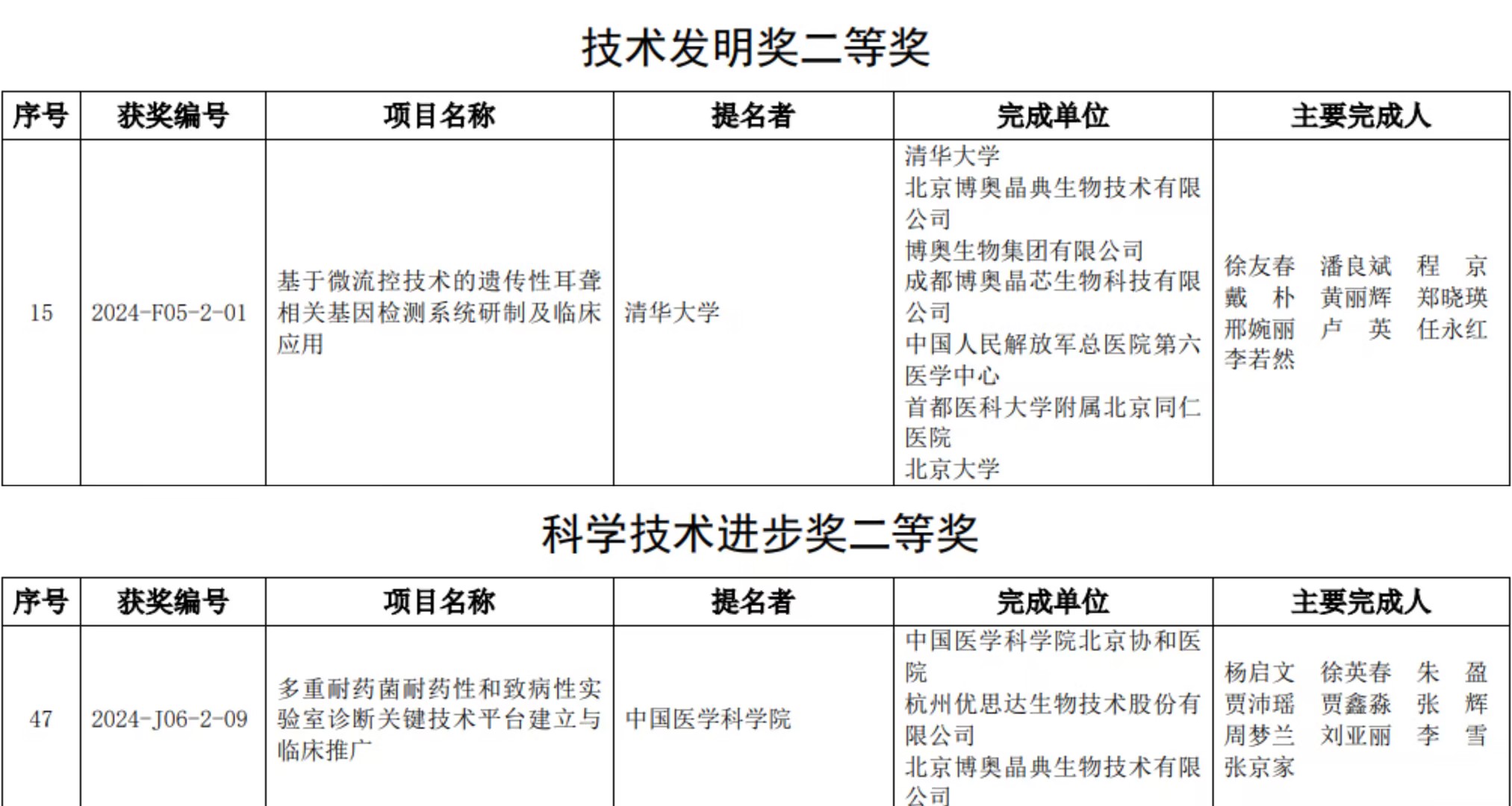 憑借一直以來構(gòu)建的“基礎(chǔ)研究+技術(shù)攻關(guān)+成果轉(zhuǎn)化”完整創(chuàng)新鏈條驅(qū)動下的硬核創(chuàng)新實力,博奧在評選中脫穎而出,《基于微流控技術(shù)的遺傳性耳聾相關(guān)基因檢測系統(tǒng)研制及臨床應(yīng)用》榮獲技術(shù)發(fā)明獎二等獎、《多重耐藥菌耐藥性和致病性實驗室診斷關(guān)鍵技術(shù)平臺建立與臨床推廣》榮獲科學(xué)技術(shù)進(jìn)步獎二等獎。