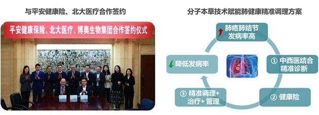 本項(xiàng)合作將分子本草技術(shù)賦能肺健康精準(zhǔn)調(diào)理方案,通過中西醫(yī)結(jié)合精準(zhǔn)診療的模式,早期對(duì)肺部健康精準(zhǔn)診斷、精準(zhǔn)調(diào)理+治療+管理,并與健康保險(xiǎn)打通,從而實(shí)現(xiàn)肺健康精準(zhǔn)診療險(xiǎn)一體化。未來將會(huì)?針對(duì)更多疾病病種,開展基于分子本草技術(shù)的中西醫(yī)結(jié)合個(gè)性化精準(zhǔn)診療,為中醫(yī)藥高質(zhì)量融入共建“一帶一路”持續(xù)發(fā)力,加速推動(dòng)中醫(yī)藥國際化。